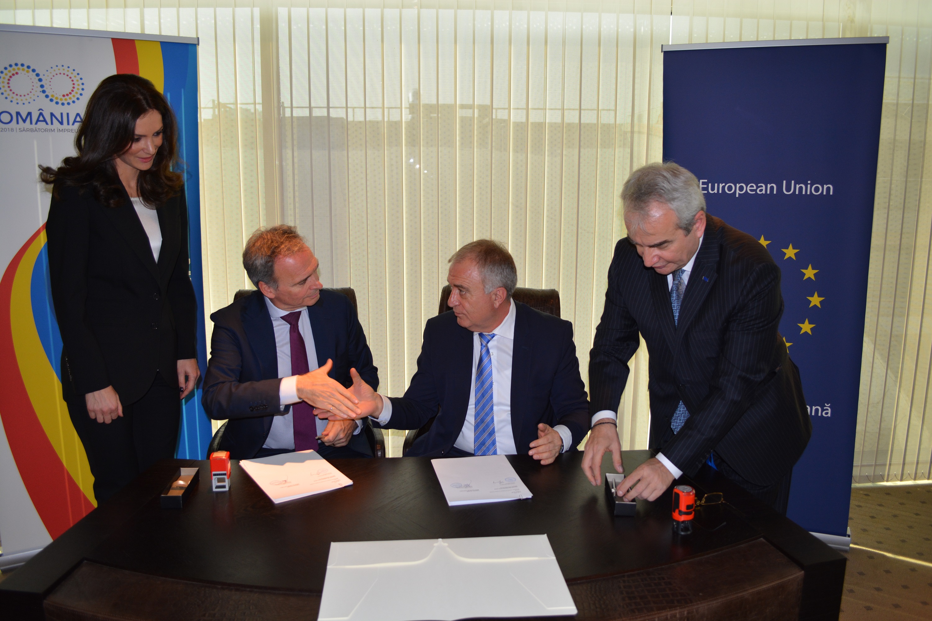Directorul general al Transgaz S.A, Ion Sterian si CEO-ul Black Sea Oil & Gas SRL, domnul Mark Beacom, au semnat contractul de transport al gazelor naturale pentru productia provenita din Proiectul Dezvoltare Gaze Naturale Midia (“Proiectul MGD”) in Sistemul National de Transport (“SNT”).